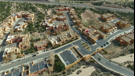 Flying above Desert City Landscape